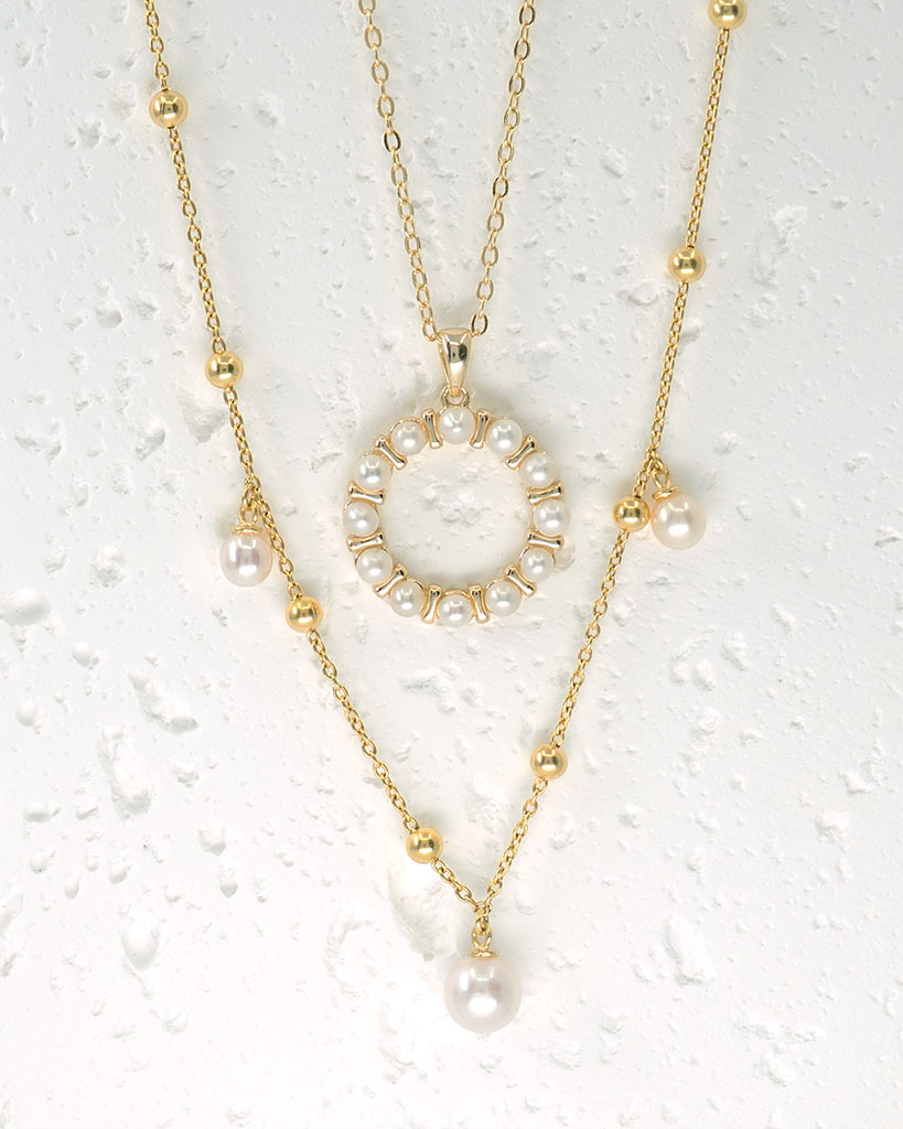 Collier argent doré, perles naturelles blanches et argent doré AURELIA
