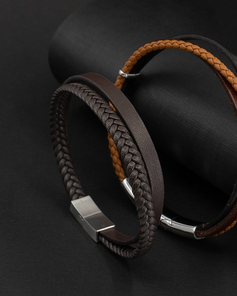 La collection Bracelets Multi-rangs Homme JOURDAN associe cuir, acier, cordelettes et pierres pour créer des compositions audacieuses. Des bijoux modernes et affirmés qui apportent caractère et originalité à chaque poignet.