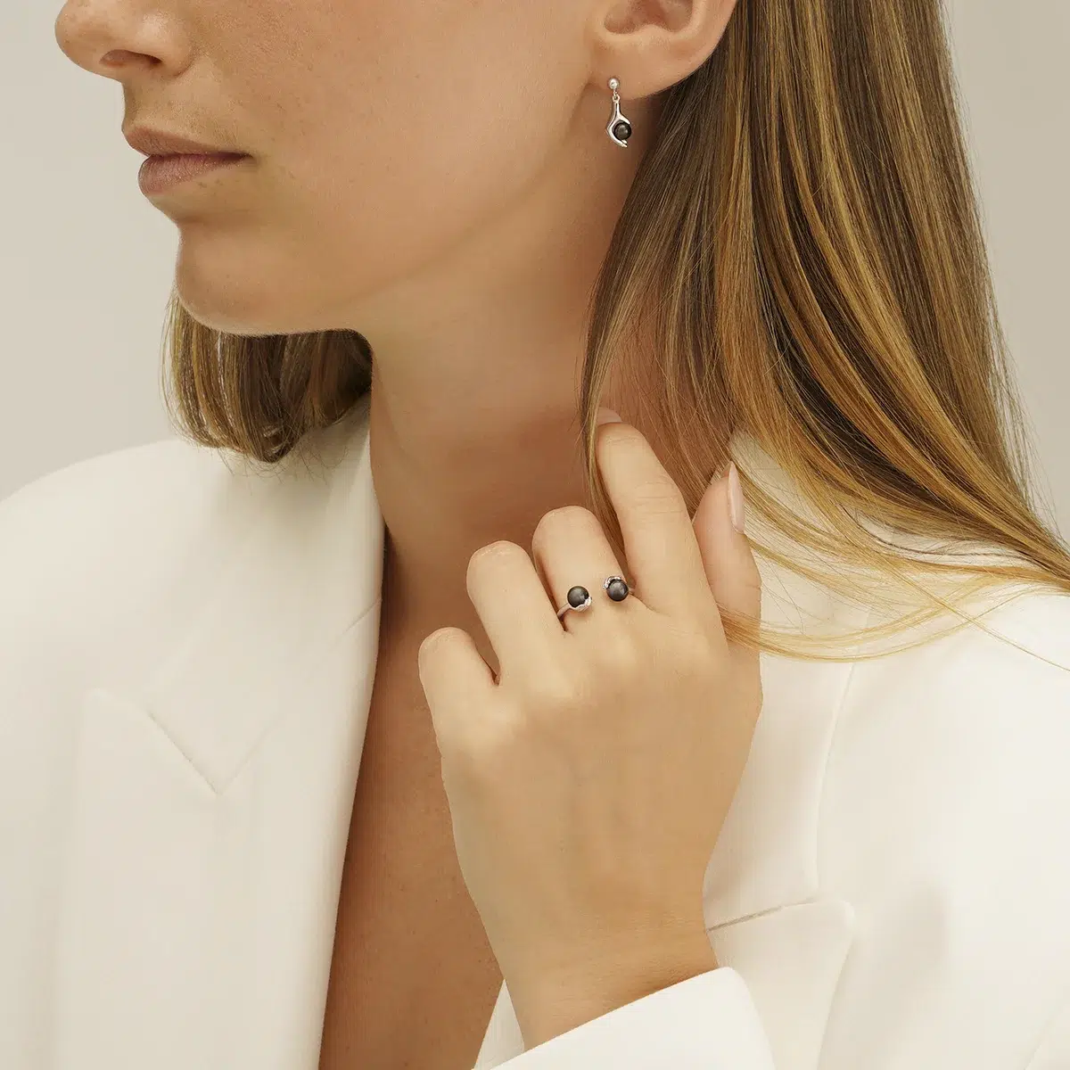 Cette bague HÉLICÉ en argent massif présente un design captivant : deux mains sculptées enserrent chacune une perle en hématite noire, symbolisant mystère et protection. Ces mains, qui ornent subtilement la vôtre, offrent une double élégance, tout en capturant une force unique. Ce bijou ajustable, à la fois audacieux et raffiné, enveloppe votre doigt avec une allure énigmatique. La bague HÉLICÉ est l’accessoire parfait pour celles qui cherchent à affirmer leur style avec caractère.