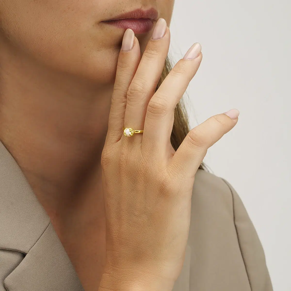 Habillez votre main de deux mains délicates. La bague HÉLICÉ en argent doré, symbolise deux mains graciles enserrant une perle naturelle blanche, incarnation de pureté et de douceur. Un geste plein de poésie et de sens, qui évoque la protection et la tendresse maternelles. Le contraste entre l’éclat doré et la perle blanche sublime cette pièce unique, qui orne la main avec grâce, idéale pour celles qui recherchent un bijou intemporel et lumineux.