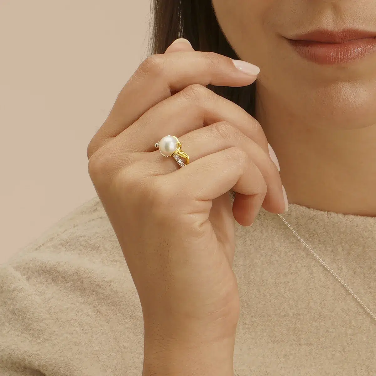 Illuminez vos mains avec la bague LUNA, une création délicate qui marie subtilement argent bicolore, éclat des zircones et douceur d’une perle d’eau douce. Cette bague se distingue par son design raffiné où l’argent se mêle à de fines touches dorées pour mettre en valeur la perle centrale.