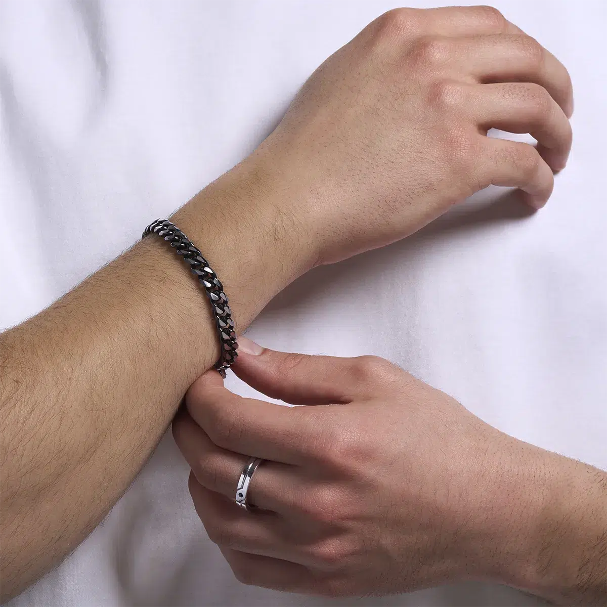 Affirmez votre style avec le bracelet CUBA, une pièce audacieuse et intemporelle, un classique revisité. Sa maille gourmette, symbole de force et de caractère, se décline ici dans un jeu de contrastes saisissant entre l’acier éclatant et le placage PVD noir mat. Son design bicolore apporte une touche moderne et sophistiquée, idéale pour l’homme qui veut allier puissance et élégance. Confortable, le bracelet CUBA se porte aussi bien seul qu’en accumulation avec d’autres bijoux pour un look résolument affirmé.