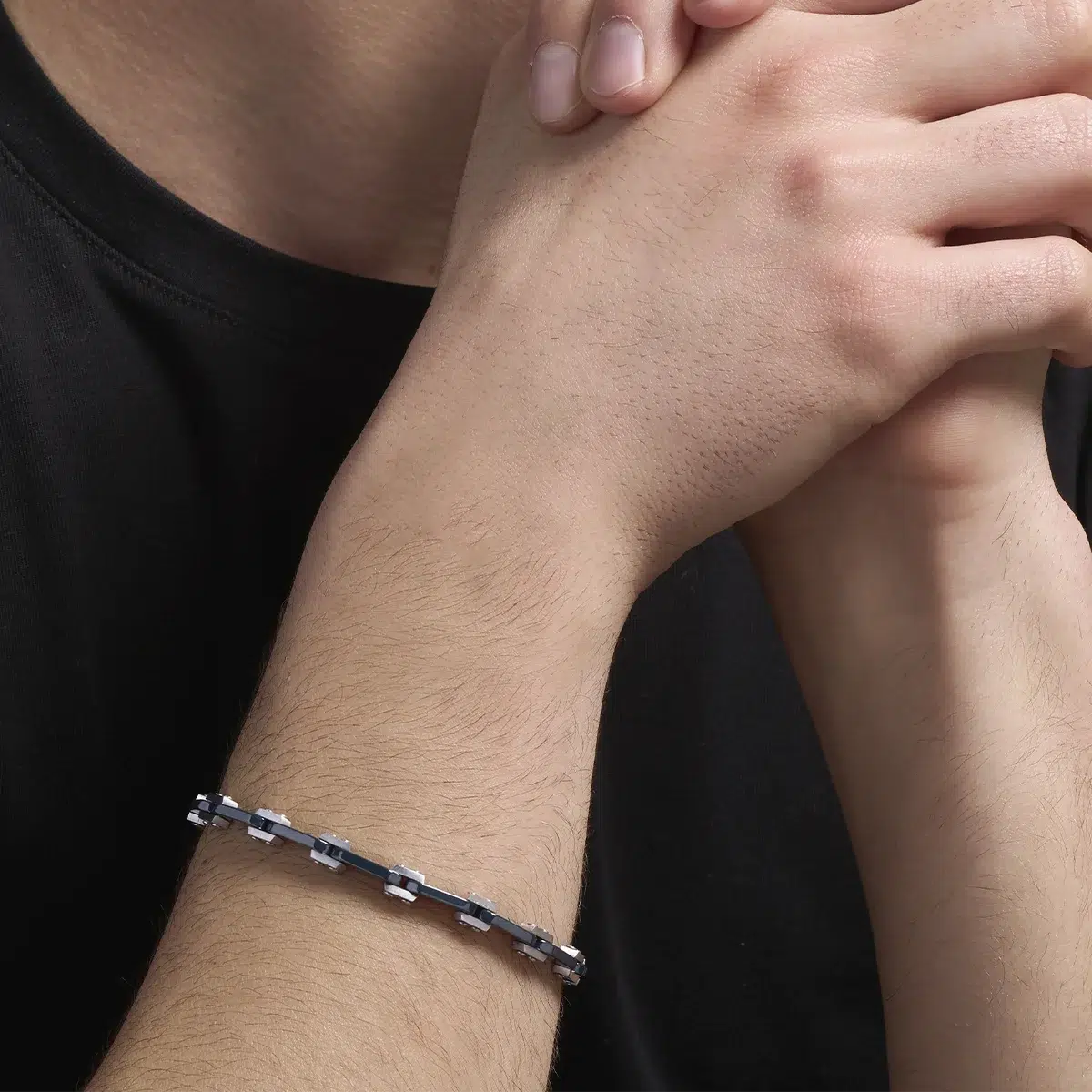 Exprimez votre force intérieure avec le bracelet ERYAS, une gourmette au design original et magnétique. L’acier lumineux s’unit à la céramique noire profonde pour créer un contraste saisissant, reflet d’une élégance brute et intemporelle. Son architecture équilibrée, inspirée de l’univers du vélo, confère à ce bijou un caractère unique et affirmé. Léger mais robuste, il épouse le poignet avec une fluidité naturelle, soulignant chaque mouvement avec intensité. Le bracelet ERYAS est une pièce de choix pour l’homme qui privilégie la distinction sans artifice, un bijou puissant qui traverse le temps avec allure et détermination.