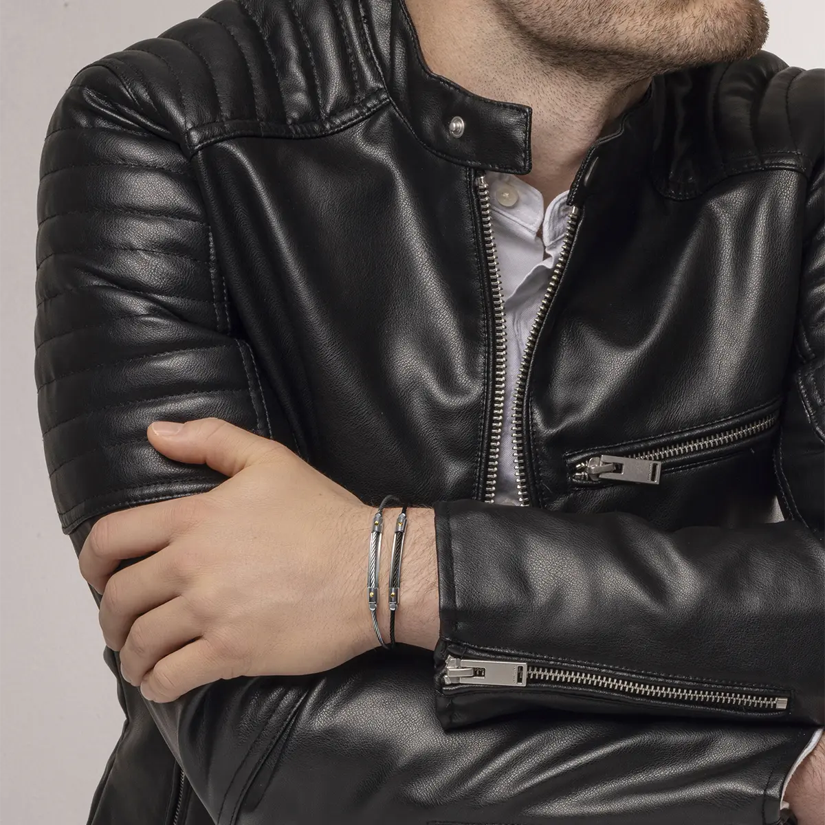 Plus qu’une apparition éclair, le bracelet KAMÉO vous offre un rôle de composition. Comptez sur ce bijou homme en câble et motif acier rehaussé de vis en or pour étendre votre répertoire stylistique. Fermoir mousqueton. Existr en version marron ou noir.