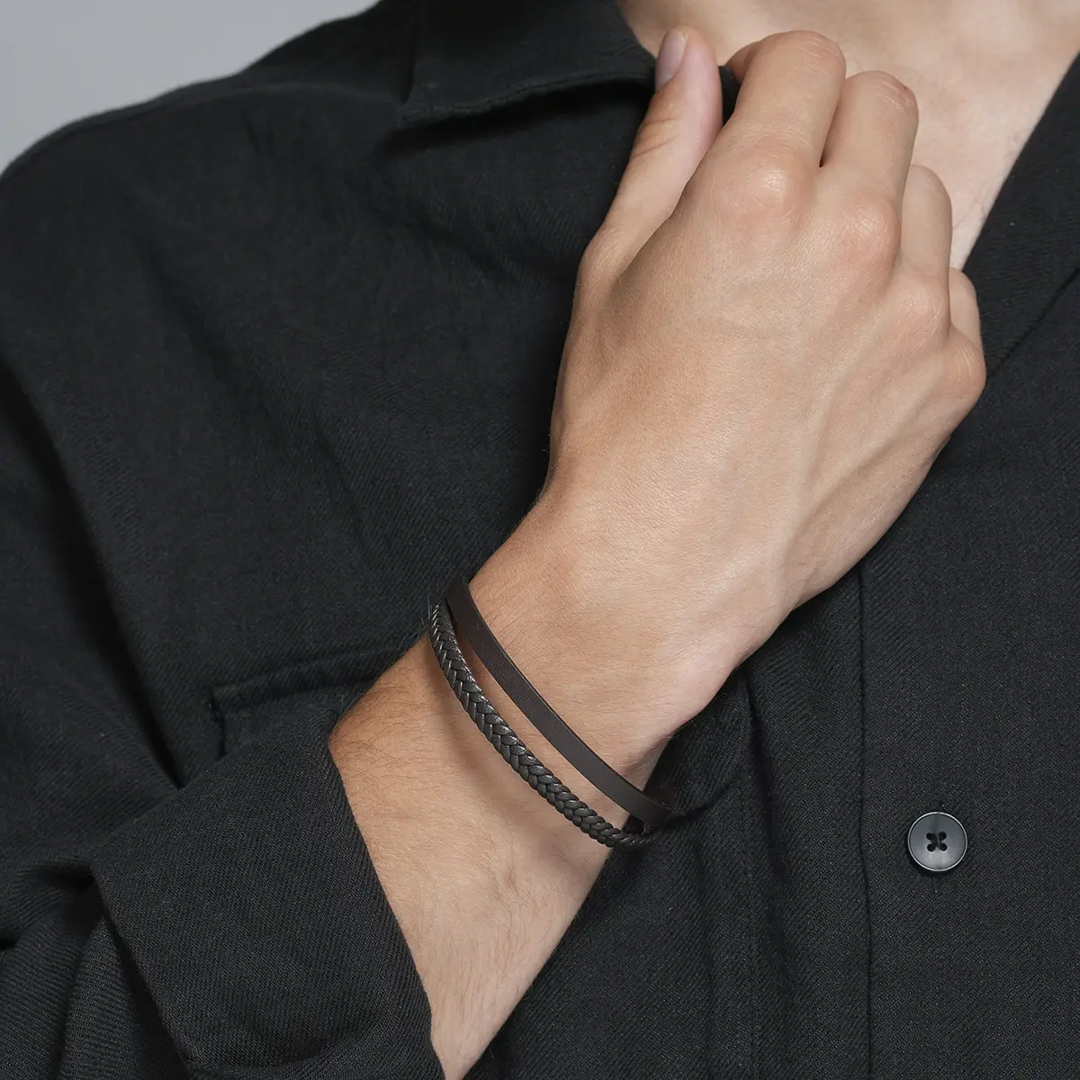Élégance sobre et caractère affirmé : le bracelet LUMIO allie subtilement cuir lisse et cuir tressé pour une allure résolument contemporaine.