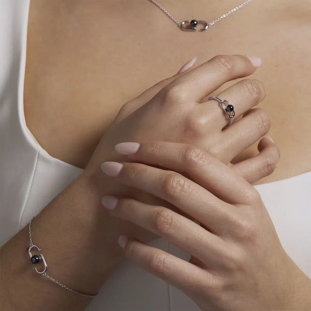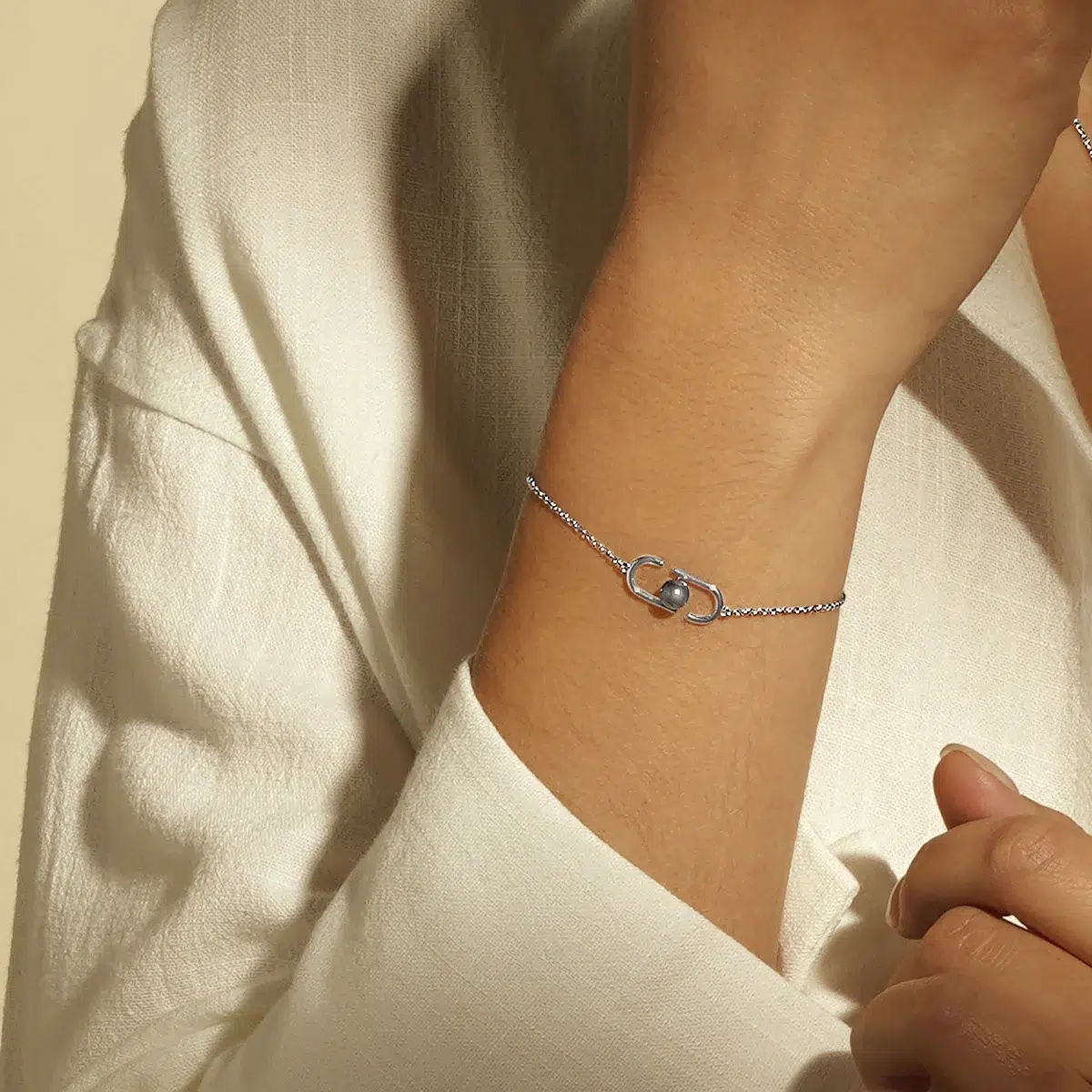 Optez pour un bracelet au design minimaliste et chargé de sens avec le Bracelet RITUAL en argent 925 et perle d’hématite noire. Son pendentif, composé de deux « J » stylisés, rend hommage à l’identité de la marque Jourdan tout en évoquant l’équilibre et l’harmonie. Au cœur de cette structure épurée, une perle d’hématite noire, symbole de force et de protection, capte la lumière avec intensité. Sa chaîne fine et délicate sublime le poignet avec modernité et raffinement, s’adaptant à toutes les occasions. Élégant et intemporel, le Bracelet RITUAL est un incontournable pour un style à la fois subtil et affirmé.
