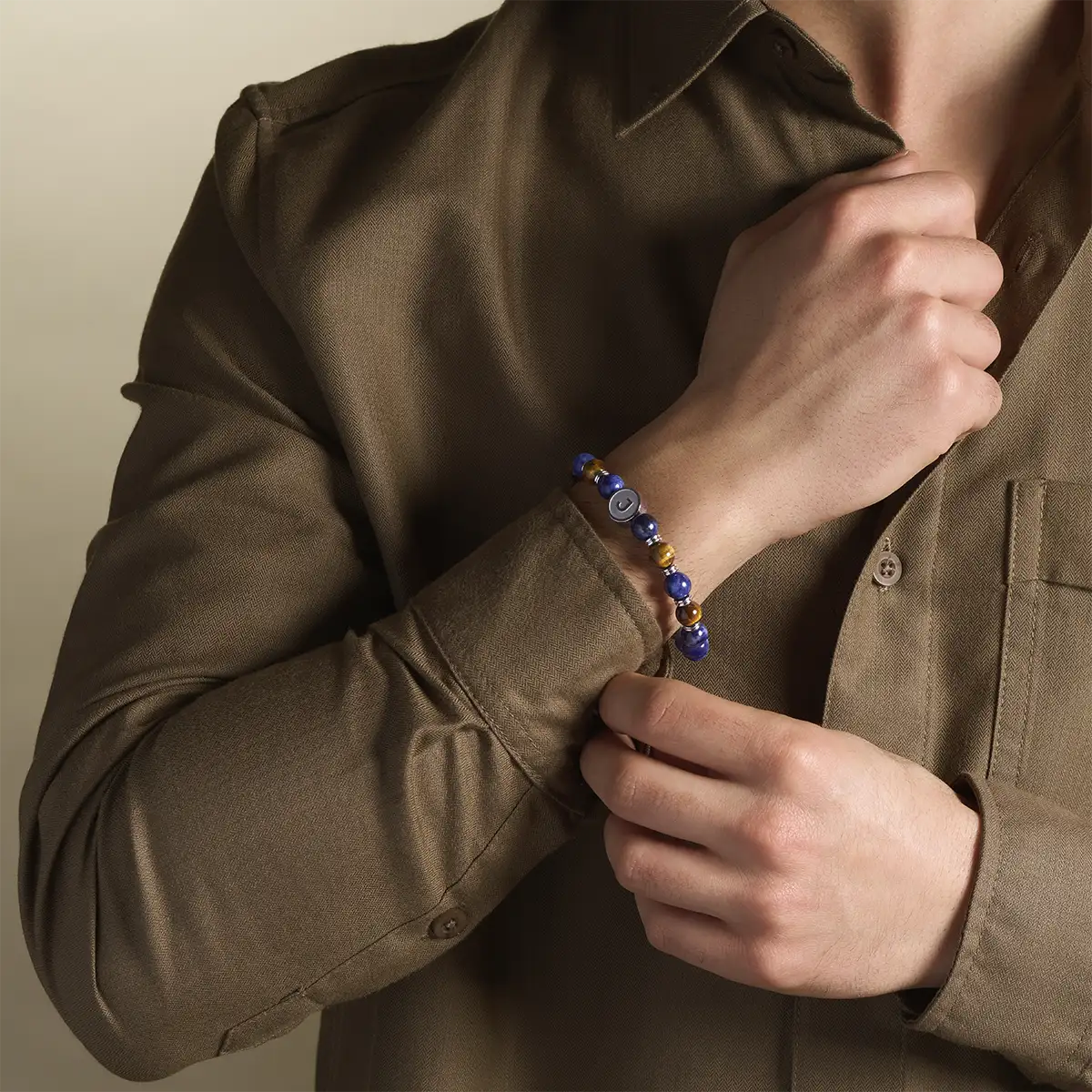 Canalisez votre énergie avec le bracelet SELWIN, un bijou masculin où puissance et sérénité s’associent. Conçu en œil de tigre, pierre de protection et de confiance en soi, et en sodalite, symbole d’intuition et de clarté mentale, il apporte un équilibre parfait entre force et sagesse. L’acier, travaillé avec précision, vient sublimer son allure sophistiquée. Son médaillon en œil de tigre agit comme un talisman, rappel de votre détermination et de votre assurance. Idéal pour l’homme qui avance avec maîtrise et lucidité, le bracelet SELWIN Bleu est bien plus qu’un accessoire : un symbole de caractère et d’élégance affirmée.