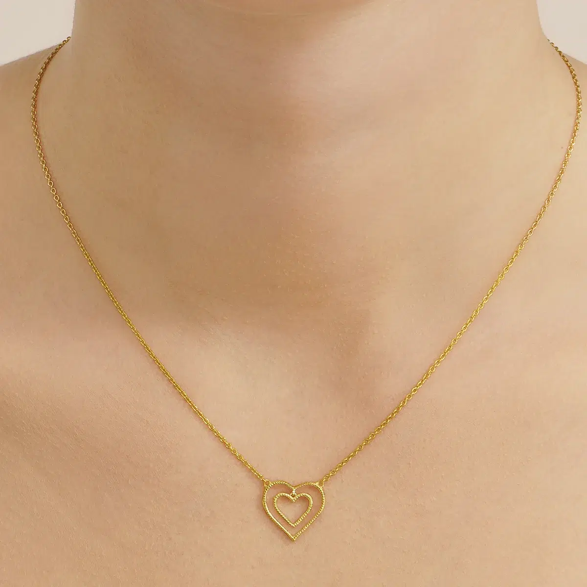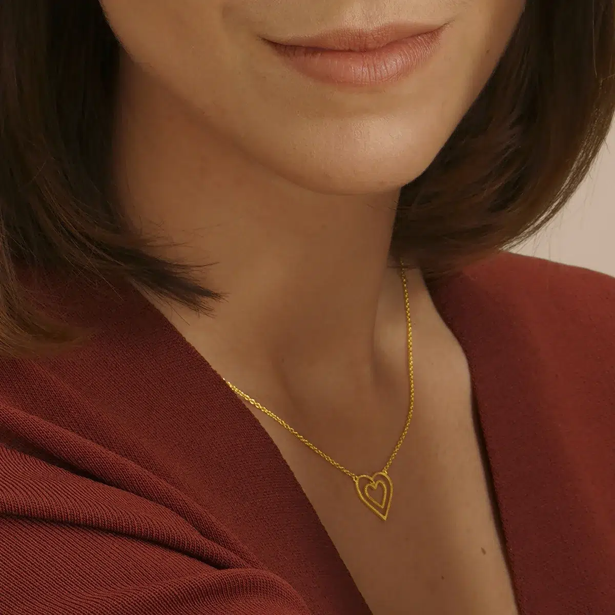 Laissez l’amour se manifester délicatement autour de votre cou ! Permettez à ce charmant Collier PHILIA de captiver votre cœur. Confectionné en argent massif doré, ce collier est orné d’un pendentif composé de deux cœurs ajourés l’un dans l’autre. Il apportera une touche romantique et empreinte de poésie à votre garde-robe.