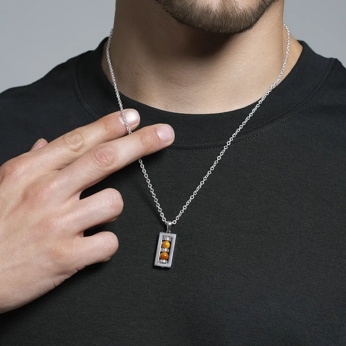 Affirmez votre style avec le collier RÉMUS, une création masculine alliant robustesse de l’acier et élégance naturelle des perles d’Œil de Tigre. Ce collier se compose d’une chaîne en acier solide, sublimée par un pendentif rectangulaire en acier, orné de deux perles d’Œil de Tigre authentiques. Ces pierres semi-précieuses apportent une touche de chaleur et de caractère, réputées pour leurs propriétés protectrices et énergétiques. Le design épuré du pendentif met en valeur ce duo de matières, pour un bijou à la fois contemporain et chargé de sens.